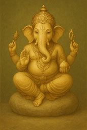 Ganesha, Gott im Hinduismus, steht für Weisheit, Geduld und Lebensfreude. Überwinder von Hindernissen, Symbol für Weisheit, Intuition und Fülle.
